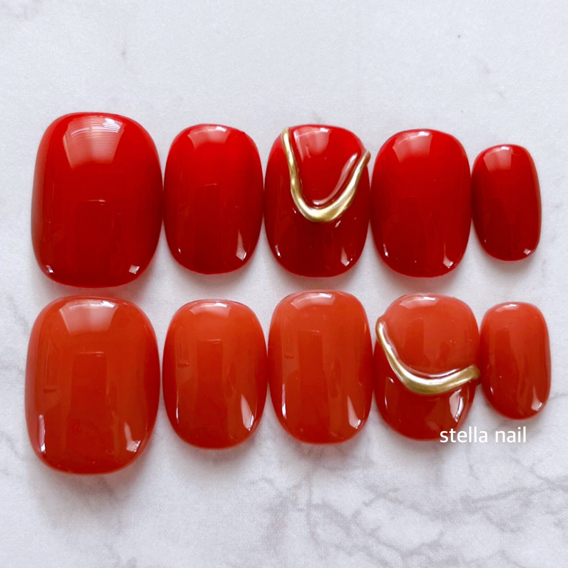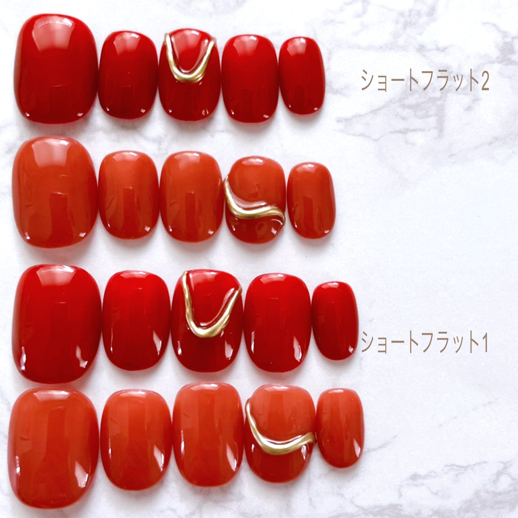 シンプルシリーズ ネイルチップ ニュアンスネイル 赤ネイル ゴールド